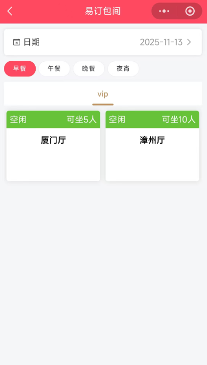 時(shí)段預訂:按具體時(shí)間分配包間,避免沖突。